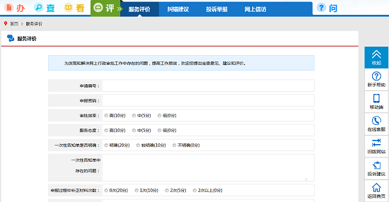 我要評中包括:服務(wù)評價、糾錯建議、投訴舉報、網(wǎng)上信訪、政風(fēng)行風(fēng)欄目,行政相對人可以對在使用平臺中的建議和問題進(jìn)行提交。
