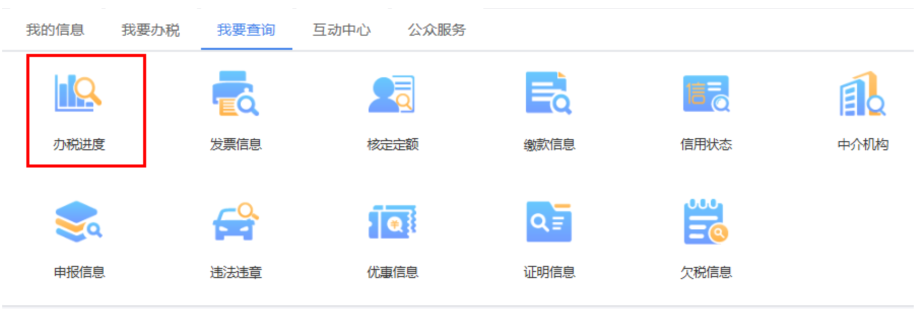 納稅人可通過【我要查詢】—【辦稅進(jìn)度】查詢已提交辦稅事項(xiàng)受理進(jìn)度。