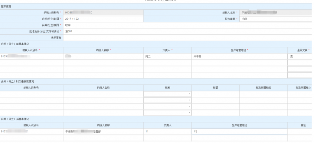 2.2填合并分立情況的具體信息,請仔細(xì)據(jù)實(shí)填寫,有關(guān)數(shù)據(jù)會自動帶出。