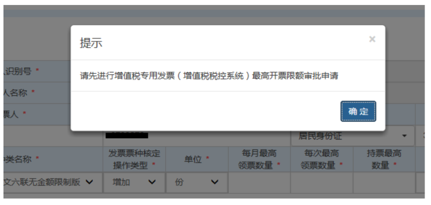 (1)首次申請辦理增值稅專用發(fā)票核定業(yè)務(wù)或修改增值稅專用發(fā)票最高開票限額的,需先進行增值稅專用發(fā)票(增值稅稅控系統(tǒng))最高開票限額審批申請。