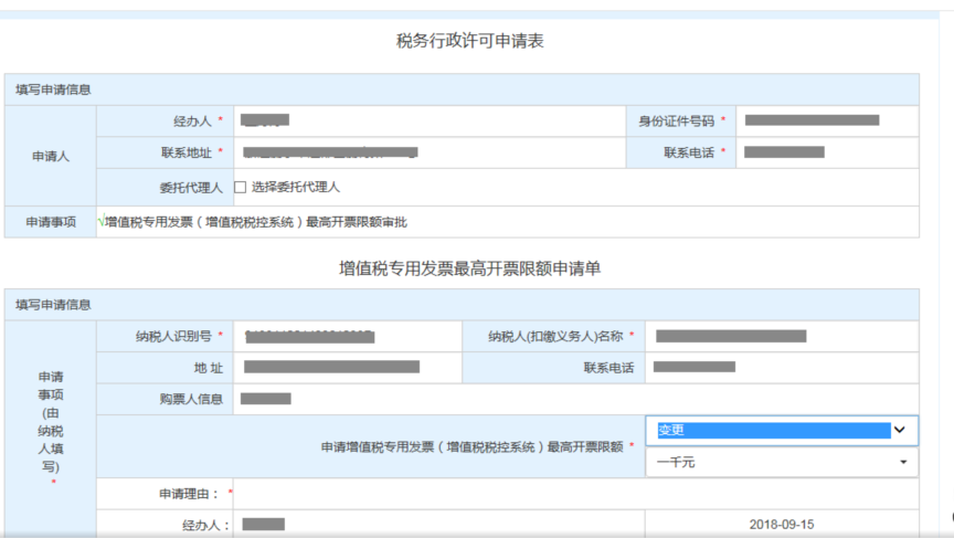 (2)填寫增值稅專用發(fā)票最高開票限額申請單