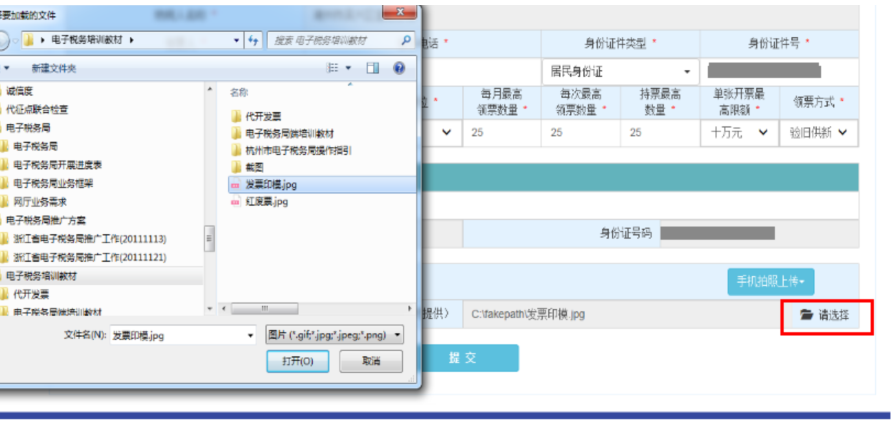 通過調(diào)取電腦已存文件或圖像進行上傳發(fā)票專用印模,如下圖。