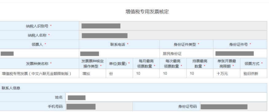 (4)納稅人票種的信息全部填寫完成后,系統(tǒng)生成一張完整的《增值稅專用發(fā)票核定表》,供納稅人檢查信息是否準(zhǔn)確。