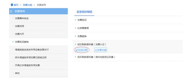 我要辦稅à發(fā)票使用à發(fā)票驗舊繳銷à抵扣聯(lián)數(shù)據(jù)采集(海關完稅憑證采集)