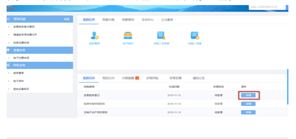 可在首頁“我的待辦”中點擊:“詳情”查詢申請受理情況。