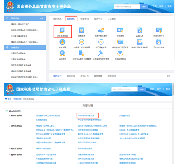 甘肅省電子稅務局——我要辦稅——綜合信息報告——身份信息報告——一照一碼戶信息變更