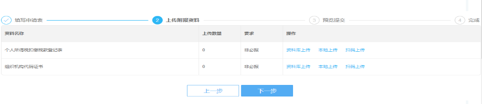按要求上傳附報(bào)資料。上傳完成后,點(diǎn)擊【下一步】按鈕。