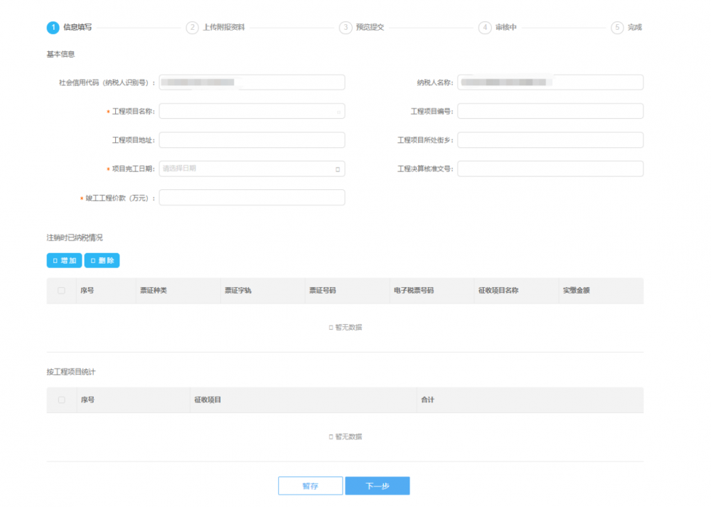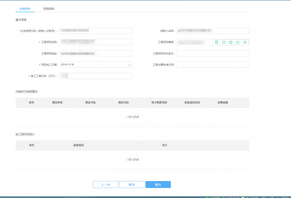 注意:使用本功能前,您必須存在未核銷的“建筑業(yè)項目報告”。