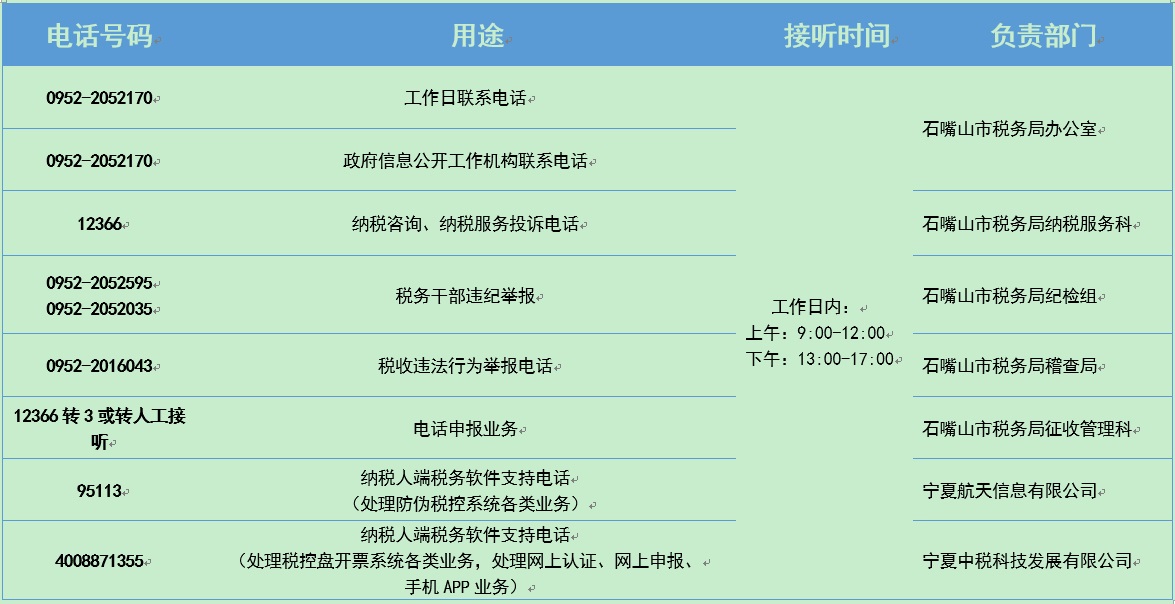 石嘴山市稅務(wù)局對(duì)外公開電話明細(xì)表