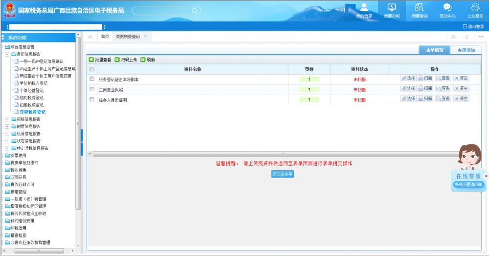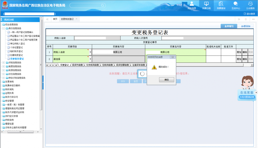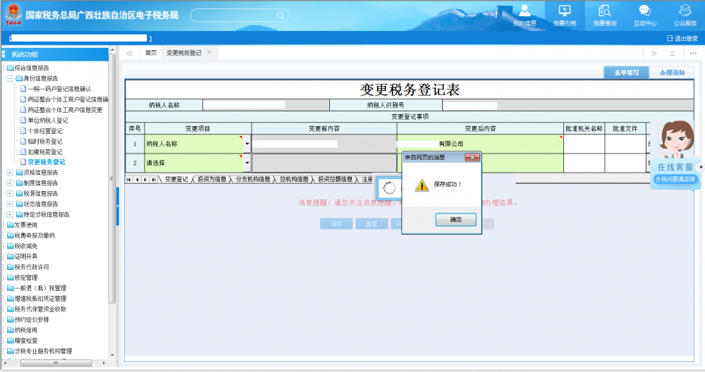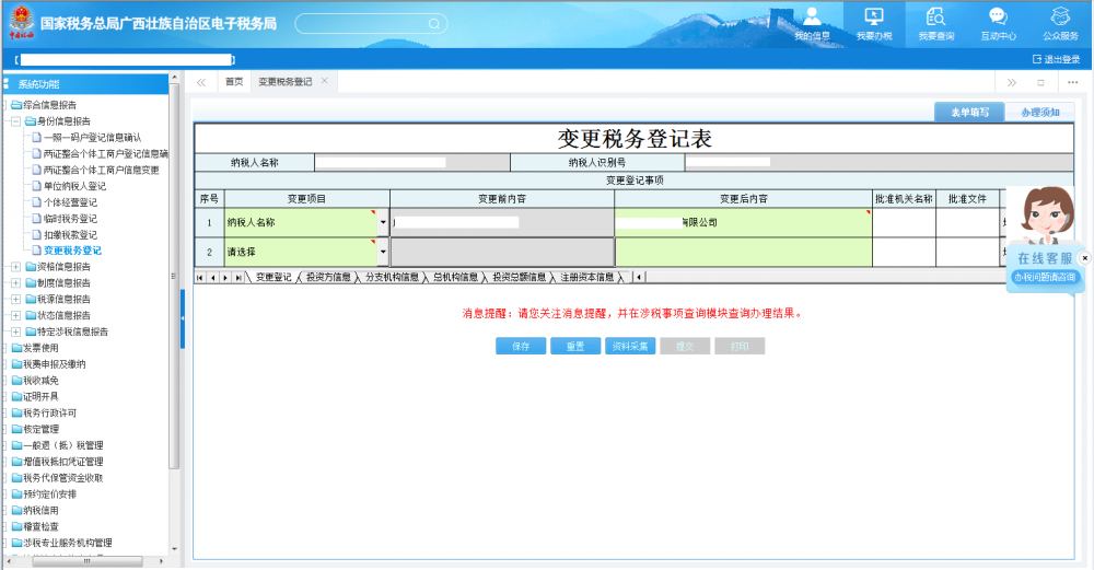 (一)登錄廣西電子稅務(wù)局填寫《變更稅務(wù)登記表》