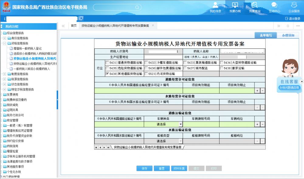 從事行業(yè)選擇為54**代碼,道路貨物運輸?shù)募{稅人需提供:
