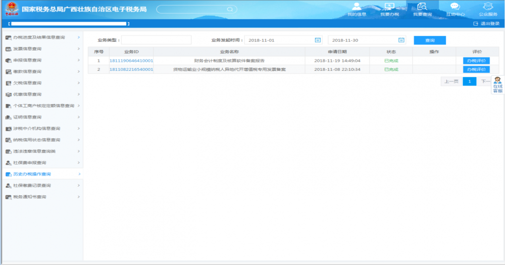 2、歷史辦稅操作查詢