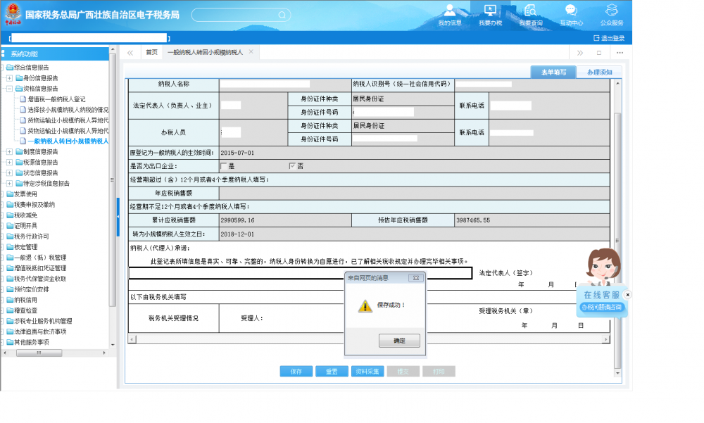填寫(xiě)表單,點(diǎn)擊【保存】按鈕,待頁(yè)面彈出提示框提示“保存成功”