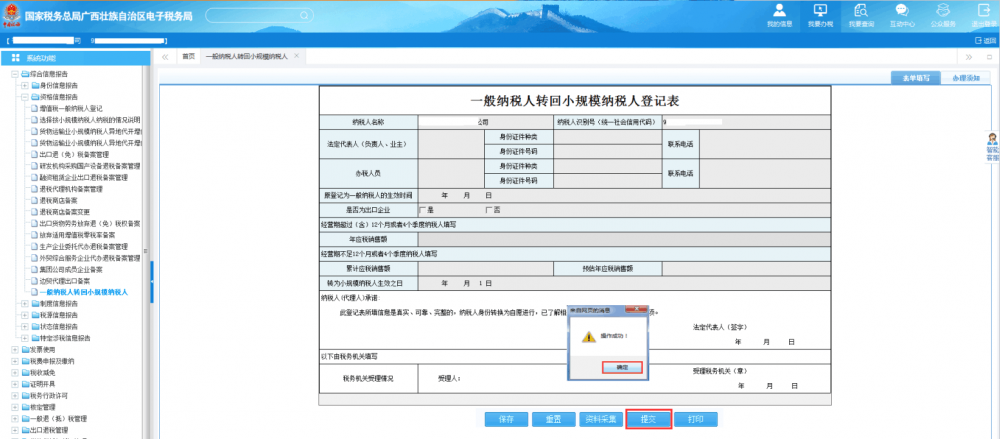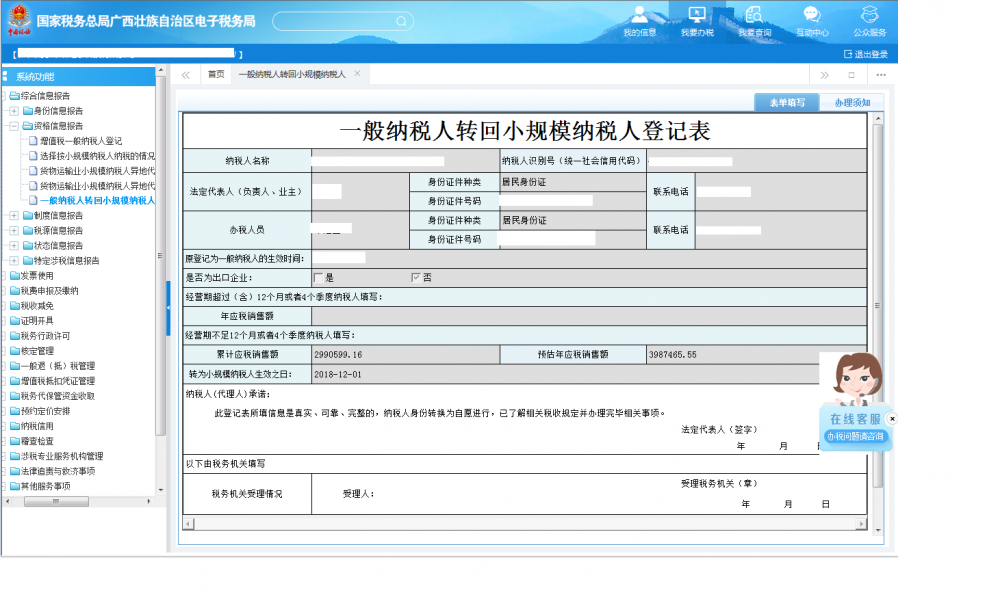 (一)填寫(xiě)《一般納稅人轉(zhuǎn)回小規(guī)模納稅人登記表》