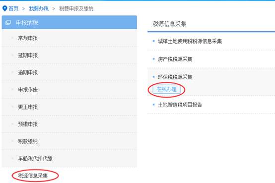 (1)我要辦稅à稅費(fèi)申報及繳納à稅源信息采集à環(huán)保稅稅源采集