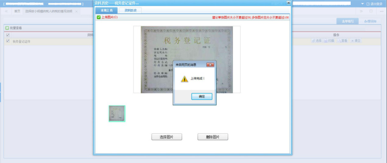 待頁(yè)面提示“上傳完成!”后,點(diǎn)擊【確定】,即完成資料采集。
