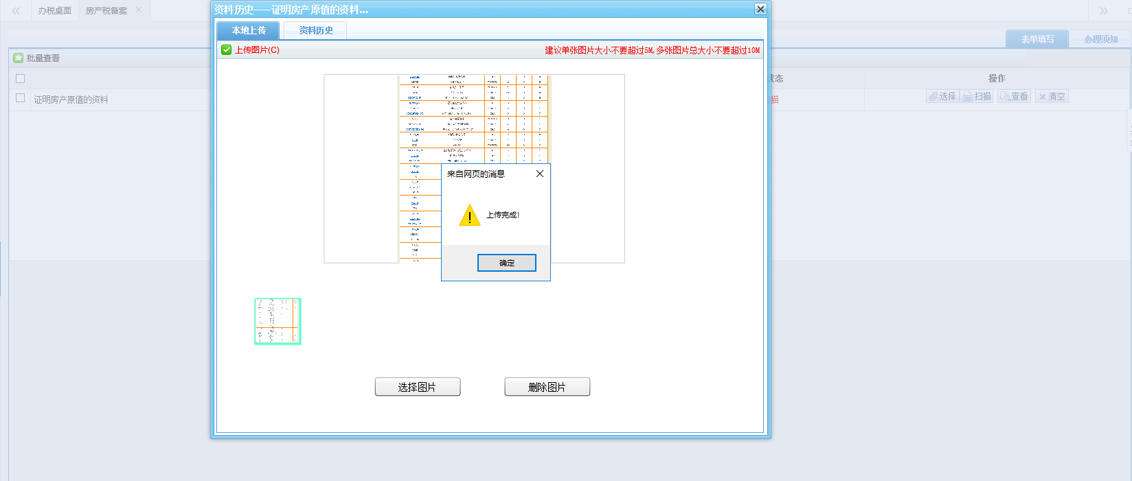 待頁(yè)面提示“上傳完成”后,點(diǎn)擊【確定】,即完成資料采集。