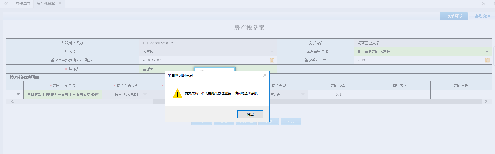 模塊路徑:首頁(yè)-【我要辦稅】-【稅收減免】-【城鎮(zhèn)土地使用稅備案】