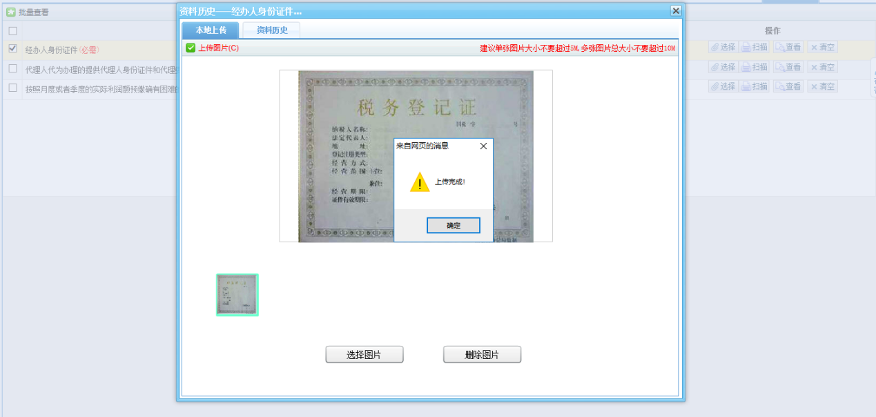 待頁面提示“上傳完成”后,點擊【確定】,即完成資料采集: