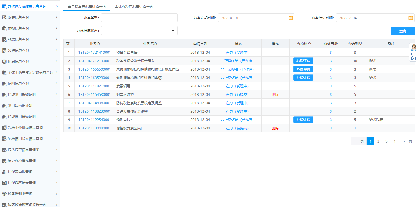 業(yè)務(wù)提交后,可在【辦稅進(jìn)度及結(jié)果信息查詢】,查看該業(yè)務(wù)辦理進(jìn)度及業(yè)務(wù)狀態(tài):