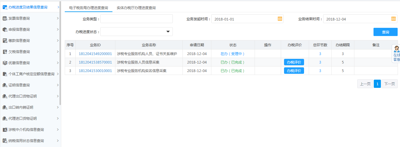 1.辦稅進(jìn)度及結(jié)果信息查詢