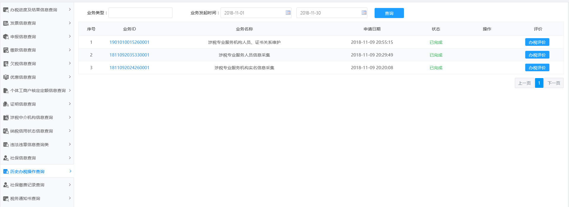 模塊路徑:首頁-【我要查詢】-【歷史辦稅操作查詢】