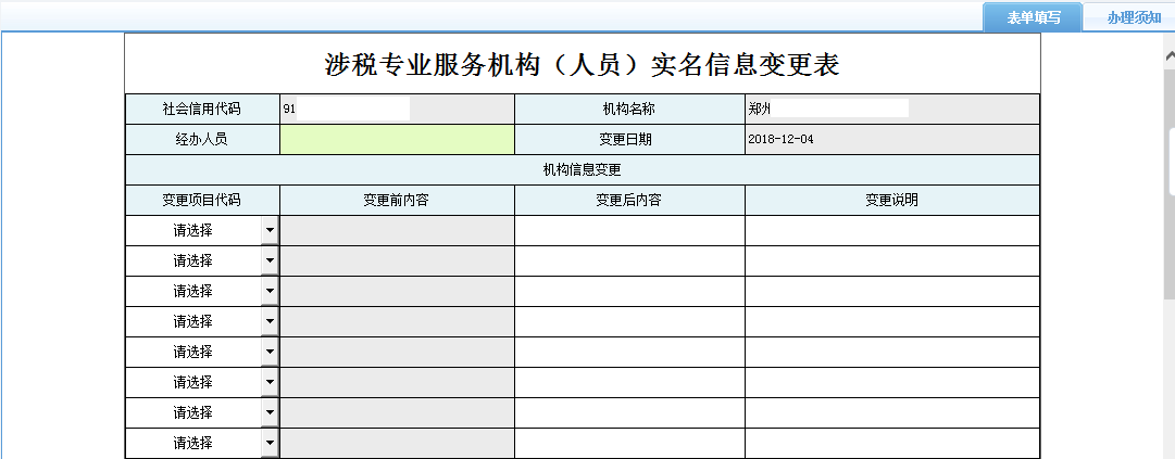 1.打開【涉稅專業(yè)服務(wù)協(xié)議信息采集】,填寫表單: