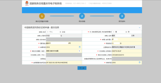 點(diǎn)擊“下一步”進(jìn)入稅收居民有關(guān)信息錄入頁面。