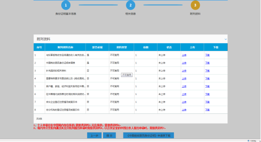 錄入證明申請信息,點(diǎn)擊“下一步”進(jìn)入“附列資料”。