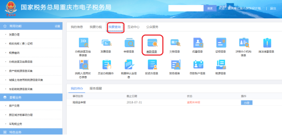 第三步:打開該功能菜單后,系統(tǒng)會(huì)自動(dòng)帶入納稅人基本信息,錄入其他查詢信息,點(diǎn)擊查詢,系統(tǒng)將會(huì)顯示查詢明細(xì)。