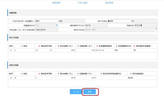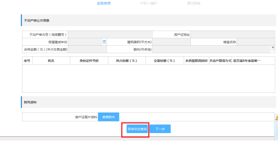 若賣方為上傳房產(chǎn)證方式提交交易申請,點擊“下一步”可以查看賣方提交的房產(chǎn)證相關(guān)信息