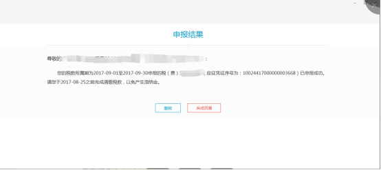 9、出現(xiàn)如圖所示申報結果,即申報成功。