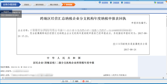 6、申報(bào)成功,出現(xiàn)回執(zhí)界面。