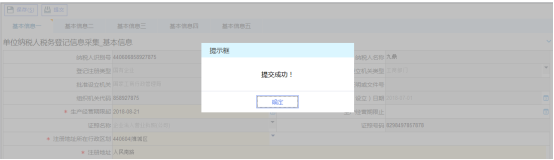 2、 進入到納稅人信息補錄頁面,填寫納稅人的基本信息后,點擊“保存”,系統(tǒng)將提示提交成功,該申請?zhí)峤坏蕉悇諜C關(guān)系統(tǒng)中。