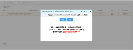 5、 點(diǎn)擊“上傳”在彈出界面選擇本地采集文件開始上傳(可一次上傳多個(gè)件),點(diǎn)擊“確定”按鈕,系統(tǒng)提示上傳成功!