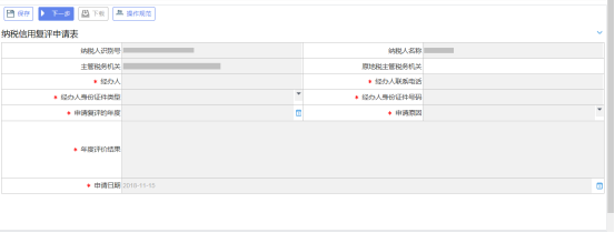 納稅人可通過此功能辦理納稅信用補評申請。