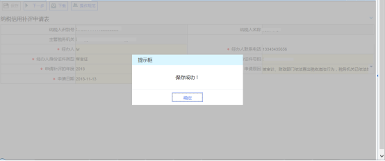 2、 按照操作規(guī)范填寫相關(guān)內(nèi)容后,點擊“保存”按鈕,提示保存成功,點擊“確定”。