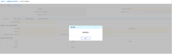 2、 填寫申請的有關數(shù)據后點擊“保存”按鈕,提示保存成功。