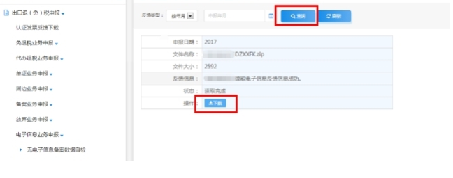 選擇反饋“單證類型”輸入下載“申報(bào)年月”點(diǎn)擊“查詢”按鈕進(jìn)行審核結(jié)