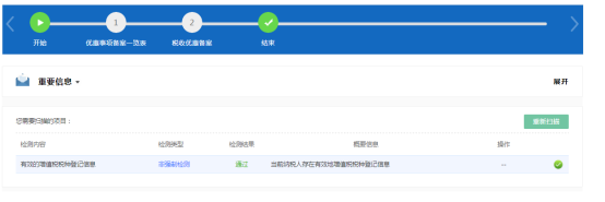 1.根據(jù)納稅人基本信息,掃描我要優(yōu)惠的前置條件,檢測類型為強制檢測。