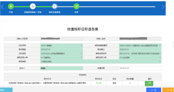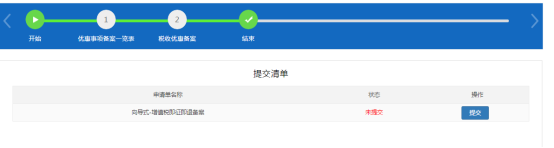 4.填寫完成后點擊下一步進入申請單提交界面,點擊提交可提交相關優(yōu)惠備案。