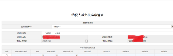 1.進入稅收減免核準界面,填寫相關信息并提交。