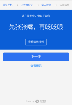 ? 接下來還要錄制視頻,請保持水平拍照、臉部完整露出(可查看演示視頻),點擊【下一步】開始錄制視頻。
