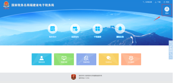 ? 打開電腦瀏覽器,輸入https://etax.fujian.chinatax.gov.cn/,進入福建省電子稅務局,選擇【登錄】。