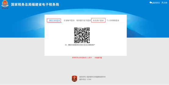 “國家稅務總局福建省電子稅務局”平臺支持個人用戶注冊,登錄方式有微信掃碼登錄、企業(yè)賬號登錄、稅務數(shù)字證書登錄以及實名用戶登錄四種登錄方式。
