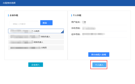 ? 登錄后,點擊【個人進入】,進入個人辦稅桌面。