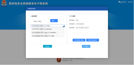 ? 進入【辦稅身份選擇】界面,可選擇企業(yè)辦稅或者個人辦稅。