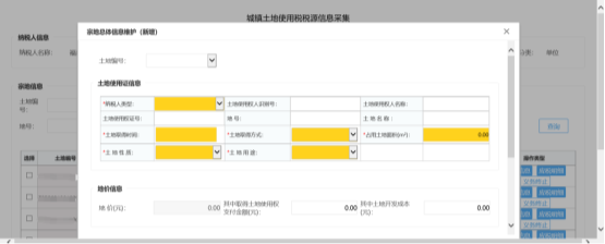 ? 新增宗地需要進(jìn)行稅源信息維護(hù),點(diǎn)擊【新增】,進(jìn)入宗地總體信息維護(hù)(新增)模塊。