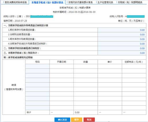手動輸入期初庫存外購啤酒液數(shù)量、期初庫存外購啤酒液數(shù)量、期末庫存外購啤酒液數(shù)量、當(dāng)期準(zhǔn)予抵減的外購啤酒液已納稅款、當(dāng)期準(zhǔn)予抵扣的葡萄酒已納稅款、本期準(zhǔn)予抵減(扣)稅款合計,手動輸入啤酒(增值稅專用發(fā)票)。