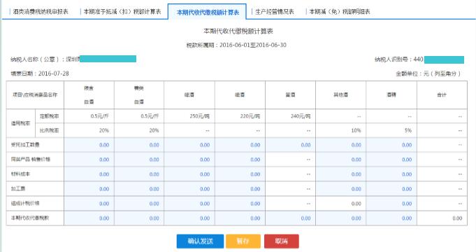 手動輸入委托加工數(shù)量、同類產(chǎn)品 銷售價格、材料成本、加工費(fèi)、組成計稅價格、本期代收代繳稅款。